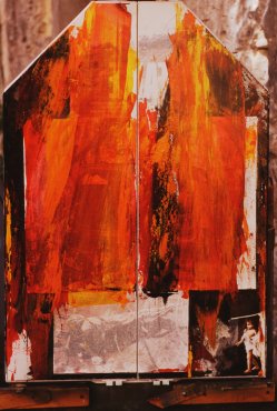 d�collage, colori acrilici, colori a olio e inchiostri su cartone